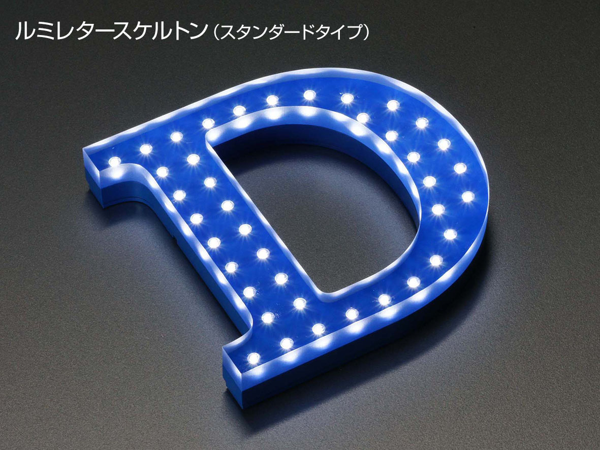 透明アクリルにレンズ加工を施し、LEDを効率良く発光させるルミレタースケルトンは、遠くからでも、抜群のアイキャッチ効果を発揮する、他のLEDサインとはひと味違う個性的なサインです。