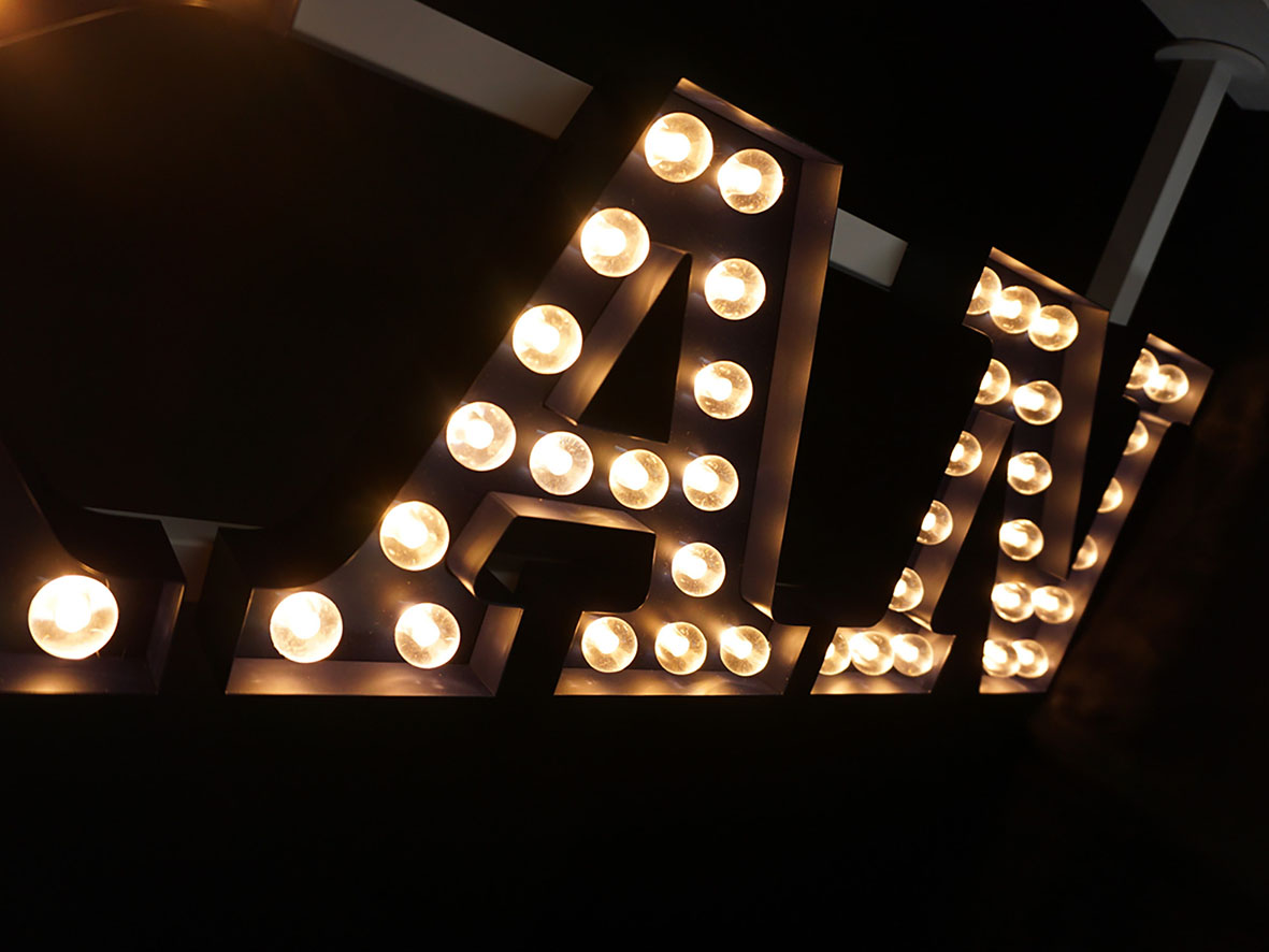 ビンテージ感が漂う電球サインをLEDでラインアップ。