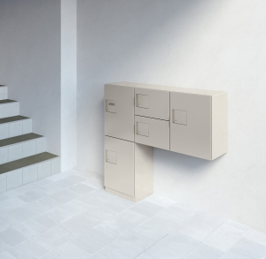 不在時でも荷物が受け取れ、再配達の手続き等の手間を無くす、防滴仕様のマンション・アパート向け宅配ボックス。