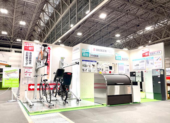 展示品は「自転車ラック、ゴミ収集庫、宅配ボックス等」の新製品です。