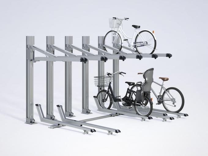 ラックの上下移動が楽に行える上段の自転車ラック。省スペースでも自転車の収容台数を確保できます。自転車を出庫後、ラックが自動で上昇する便利機能を搭載。