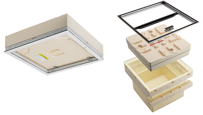 建築物省エネ法の中で求められている『省エネ基準(断熱等性能等級4)や、誘導基準(断熱等性能等級5)』に対応する気密断熱 点検口(天井・壁・床下収納庫)を展示します。