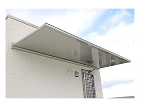 建築物に違和感なくとけ込む、シャープなデザインのアルミ軽量ひさし