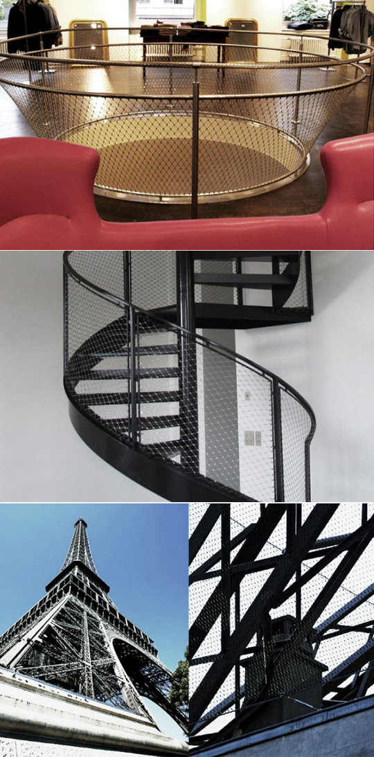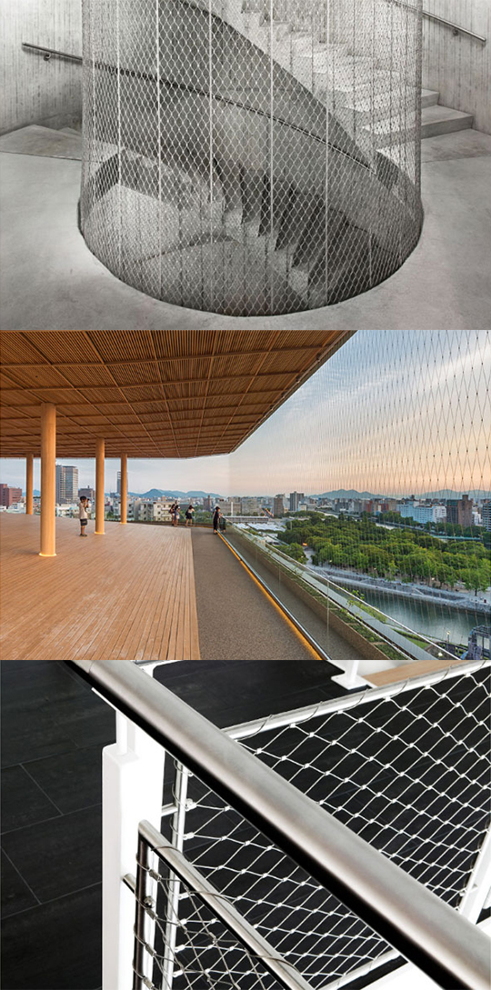 ウェブネットは、自由な設計で平面だけでなく、3次元での設置が可能なステンレス網です。機能だけでなく優れたユーロデザインで、あらゆる建築物にスタイリッシュなアクセントを付与します。橋梁・立体駐車場・バルコニー・階段などの転落・侵入防止としても、強度や耐久性を損なうことなく、究極の機能美をご提案します。