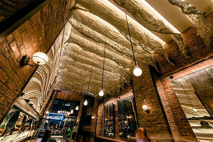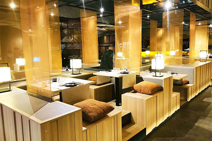 今回はインテリアを中心にデザインメッシュの採用方法を一例として展示物をご紹介。国内にはない煌びやかなメッシュは一見の価値あり!