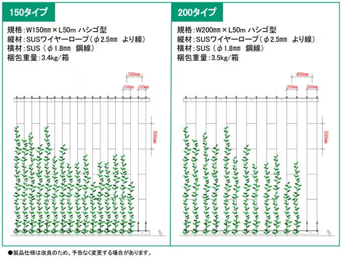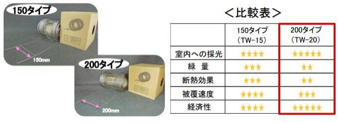 設置場所の条件や要望に広くお応えするため、ツルパワーワイヤーに従来の150タイプ(TW-15・150mmピッチ)の他に、200タイプ(TW-20・200mmピッチ)を加えました。