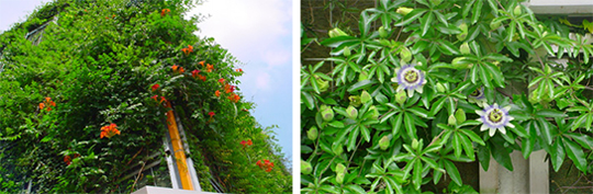つる植物を用いた壁面緑化システム「ヘデラ登ハンシステム」