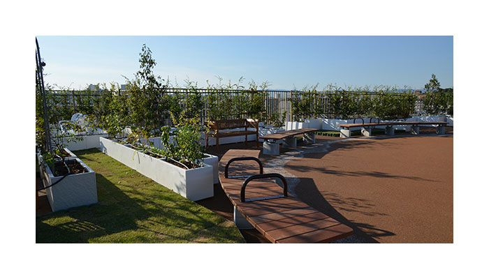 ■緑あふれる屋上をコミュニティスペースやくつろぎスペースとして活用することができ、リフレッシュ&リラックス空間に変身します。