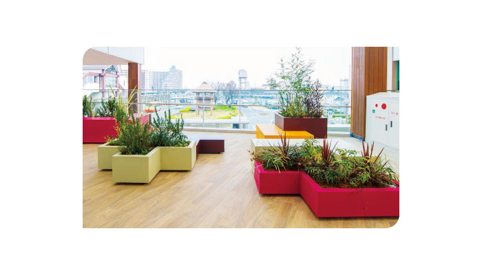 ■ランターとソファーを組み合わせ、パズルのように楽しめる緑化ユニットです。