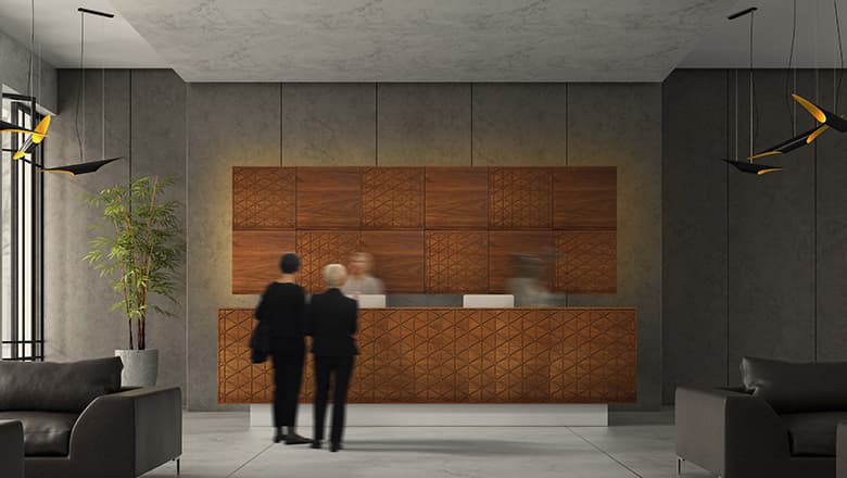 2.5mmの凹凸が素材表面に陰影をつくり、天然木ツキ板の素材感を引き立たせます。