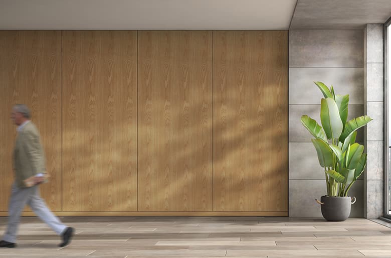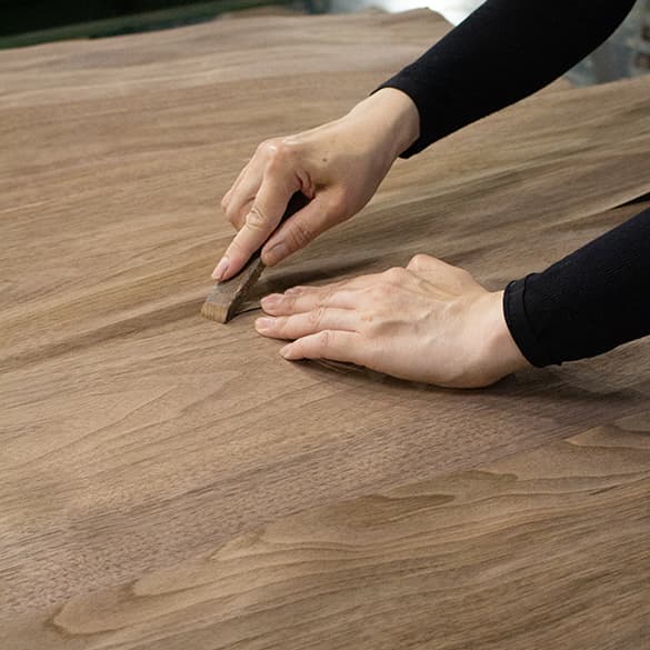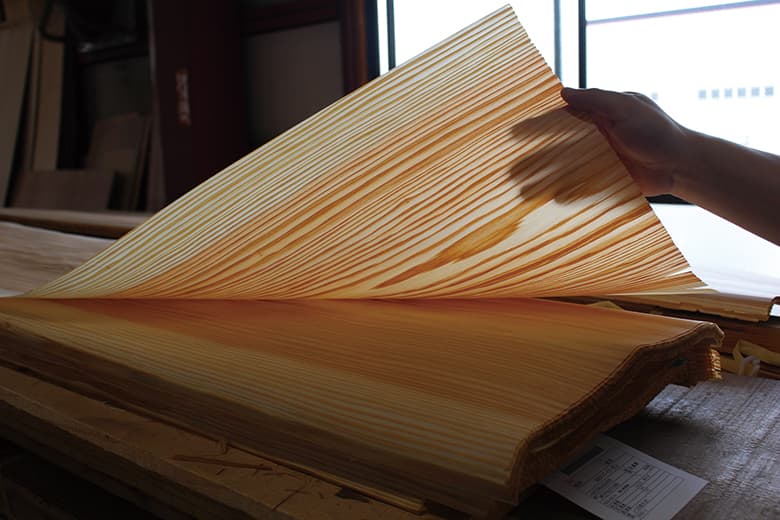 特注に特化したツキ板化粧板。樹種×木目×色×サイズなどプロジェクトに合わせて最適な素材を製作します。