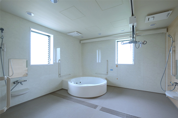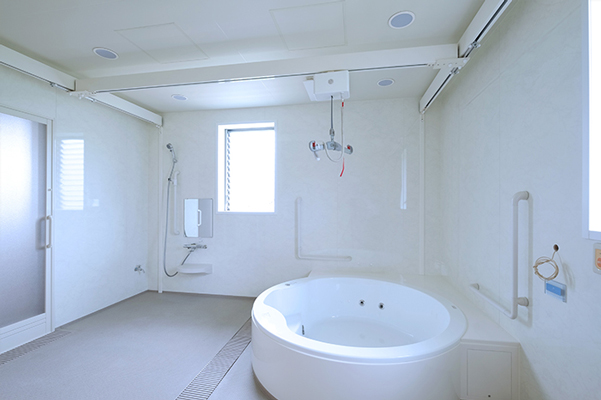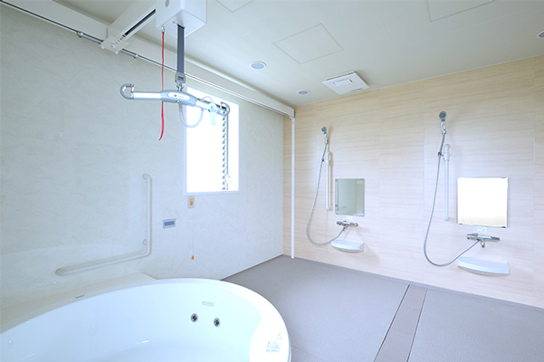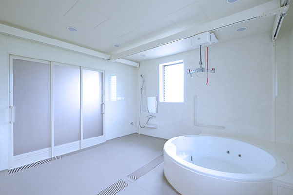 広々とした空間にこだわり浴槽と天井走行リフトを設置