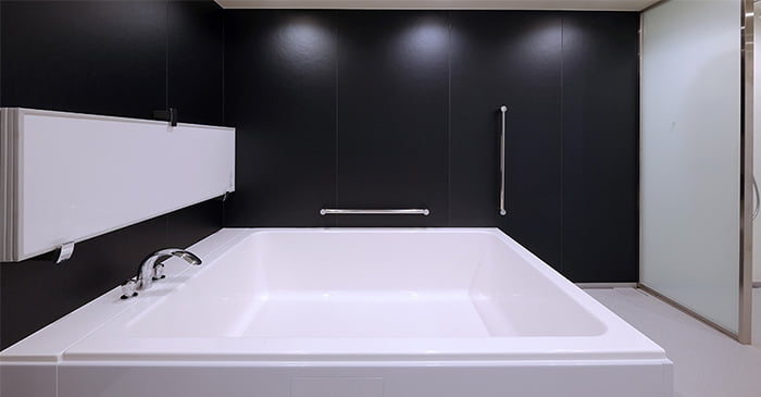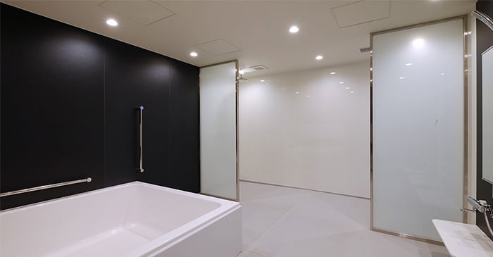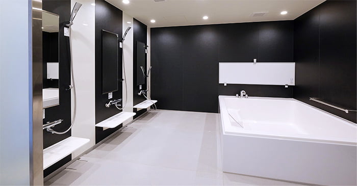 温泉のように大きく広いスペースで多人数入浴に対応したシステムバス。