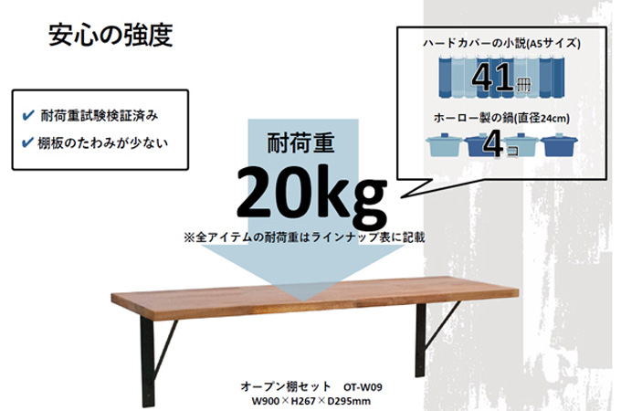 耐荷重試験検証済みで、棚板のたわみが少ない作りです。