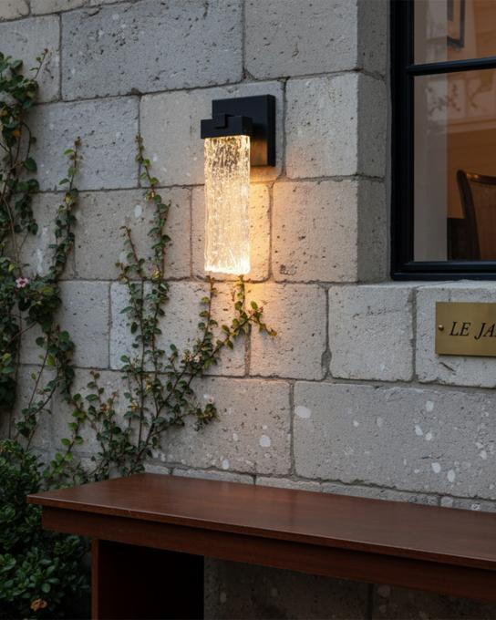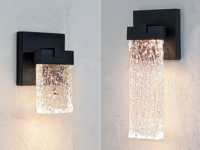 氷結した滝の様な煌めくガラスと美しい灯りは魅力的な空間を演出。細部にまでこだわったライトは圧倒的な存在感とノスタルジックな雰囲気が魅力です。玄関やエクステリア(門や駐車場などの外構)・店舗・カフェなどの外壁、廊下などにもいかがでしょうか?