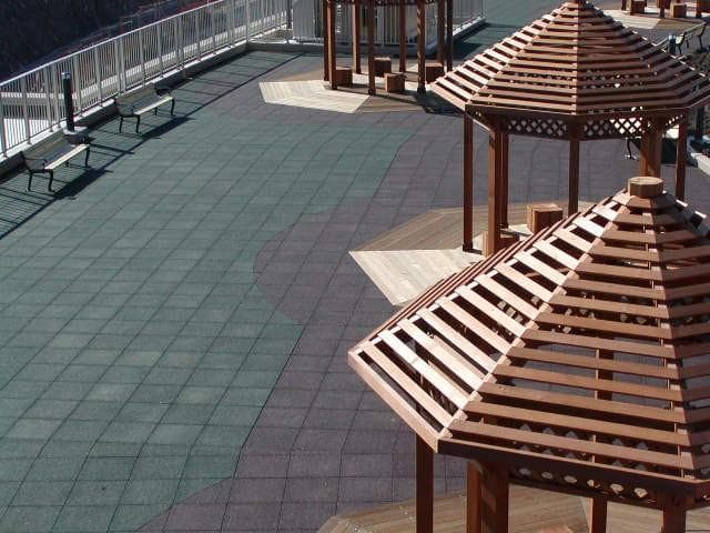 プレイタイルは、適度な空気層を含むことによりクッション性に優れているゴムチップタイルです。