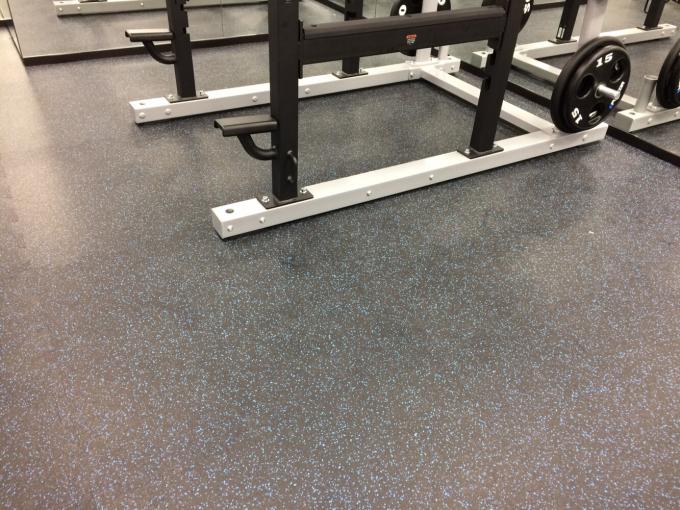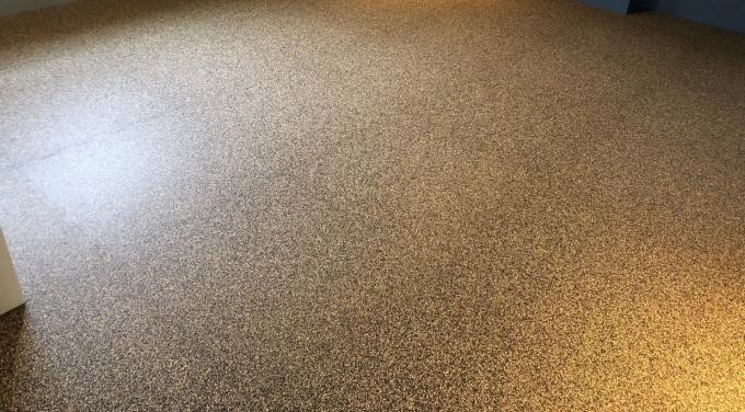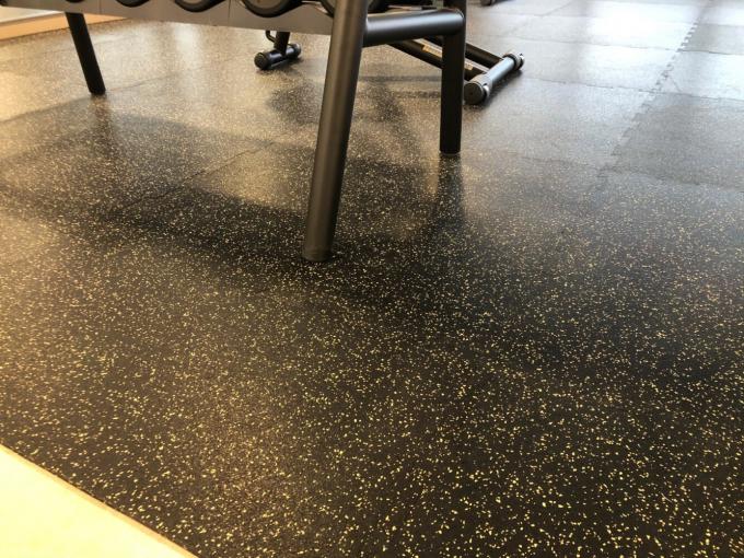 素材には古タイヤを原料としたリサイクルゴムの黒色をベースにカラーチップを配色した環境に配慮したゴム製床材です。