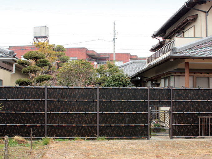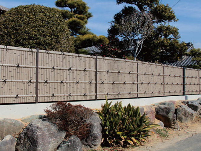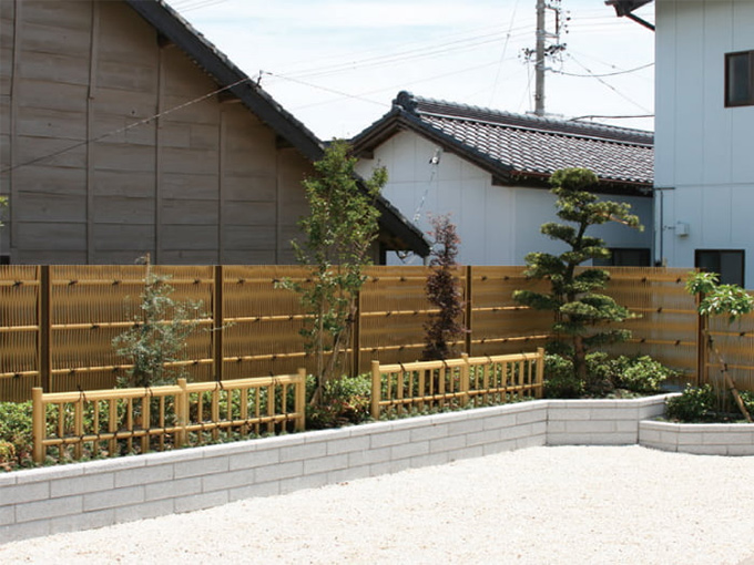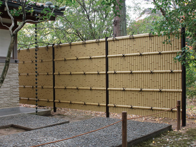 手軽で丈夫!色・形状も豊富に取り揃えているので現代建築にもよく合う竹垣です。