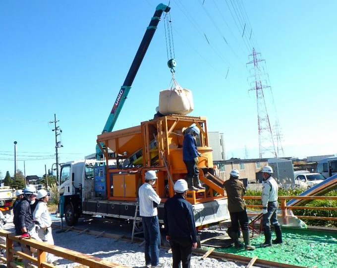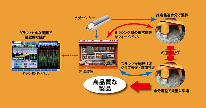 JIS生コンクリート工場で製造困難な特殊な生コン製品等を現場で正確に計量して製造し、供給することを目的として開発しました。