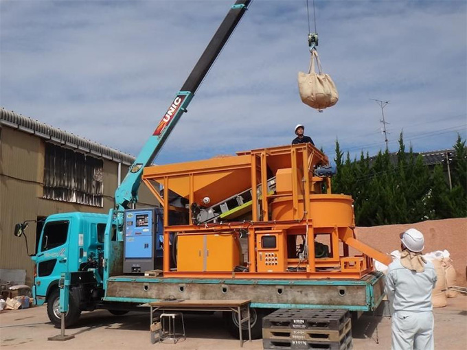 JIS生コンクリート工場で製造困難な特殊な生コン製品等を現場で正確に計量して製造し、供給することを目的として開発しました。