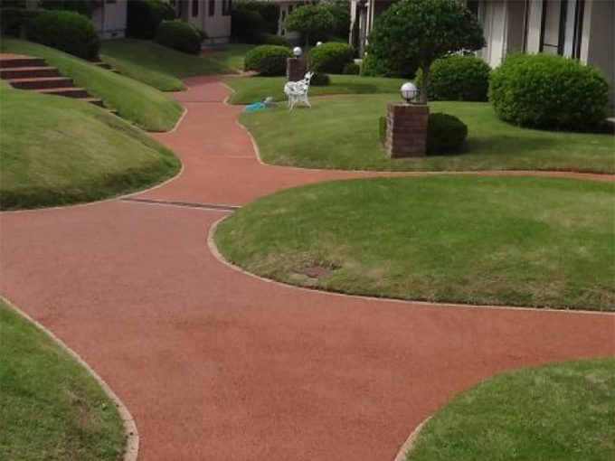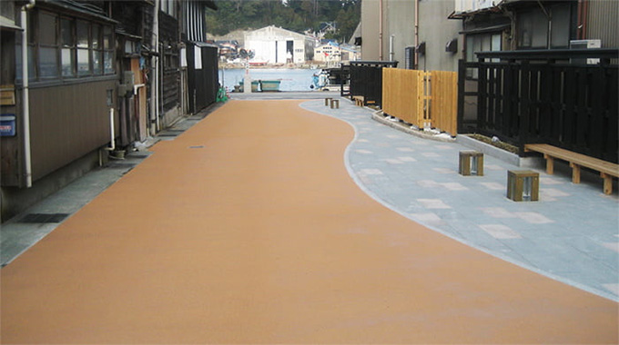 K-グランド(R)は瓦骨材専用の特殊樹脂を使用した景観性の高い樹脂舗装材です。