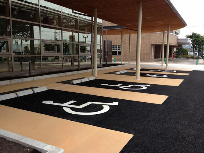 K-グランドコートは土地の都合上、歩道帯の確保が困難な路地裏や昔ながらの街並みを、見た目も鮮やかなコミュニティー道路へと変化させる事が可能です。瓦がもつ自然な色合いが明るさを加えるエッセンスになり、歩道帯・自転車帯を際立たせ、ドライバーの歩行者&自転車への意識向上に繋がります。既存の舗装に施工する事で、大がかりな工事の必要が無く、舗装のリフレッシュが出来ます。また、近年では歩道と自転車道を分ける事が推奨されており、そのような場所に最適です。