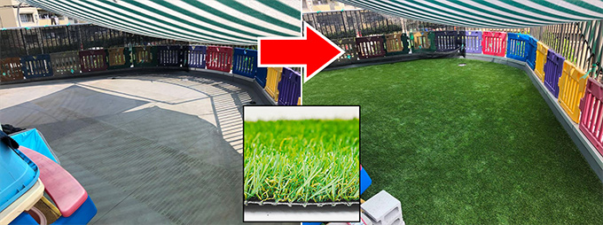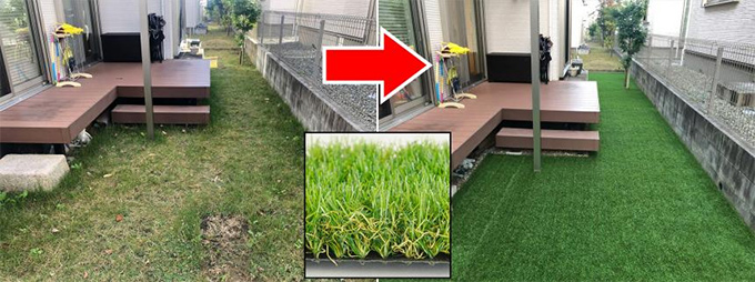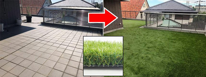 近年、人工芝は見た目のリアルさと共に触り心地も向上されています。踏み心地やクッション性など本物の芝により近く、また耐久性にも優れたものも豊富にございます。今回ご紹介しました、人工芝エメラルドの3製品はbefore・afterで比較!今まで無機質だったタイル床やコンクリート床などが見違えるように色鮮やかな緑の芝に大変身!これから人工芝を取り入れたいと思っていた方はお気軽にご相談ください。