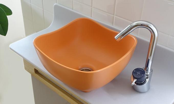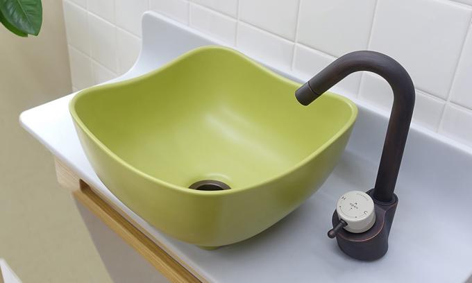 手洗器はマカロンみたいなスイーツカラー。使い勝手の良いサイズと清潔感のあるマットな質感です。
