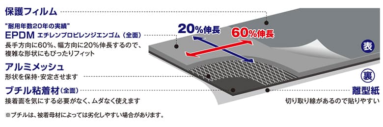 優れた伸びと柔軟性で、切って貼るだけ簡単施工の補修シート。