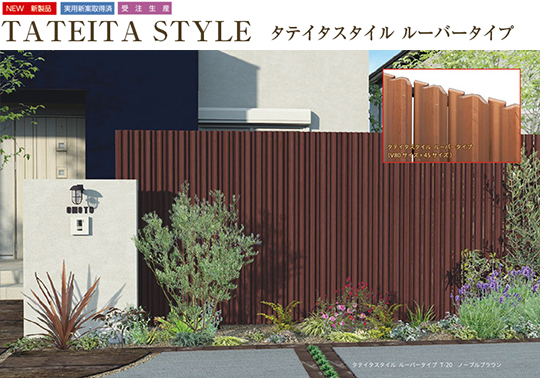 人気の縦貼りフェンスに縦ルーバー板タイプが新発売。従来品と比べ、目隠し性能が向上しました。また、タテイタスタイルは、1つ1つのユニットサイズが小さいため、より施工性が高くなりました。
