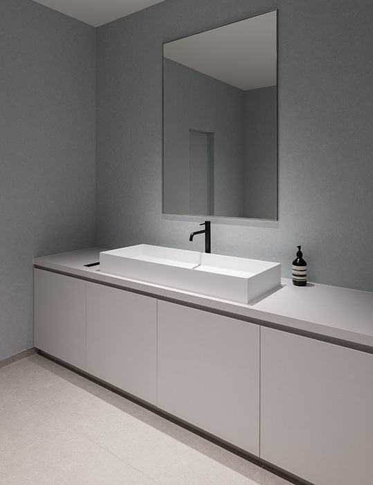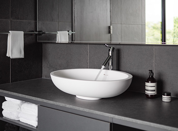 美しいマットホワイトな質感とシャープなフォルムがスタイリッシュな空間を演出