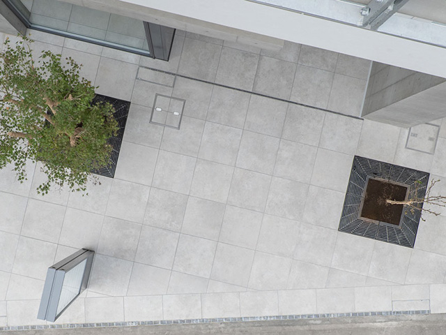 磁器質タイルの特徴であるメンテナンス性の高さと耐久性もあり、商業空間や公共空間を洗練された空間に演出します。