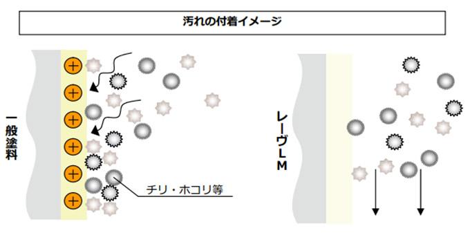レーヴLMは無機質素材のため、一般塗料やサイディング板のようにチリやホコリを寄せ付けにくい性質をあらかじめ持っています。