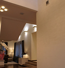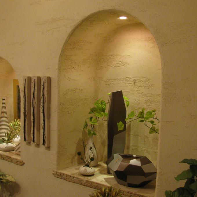 柔らかな素材感で快適な暮らしを送るための一つの手段として考えた塗り壁材で、デザインによってまるで木漏れ日の中にいるような明るくさわやかな印象を与えてくれたり近代的な印象を与えてくれたりと、さまざまな空間にフィットする仕上がりです。