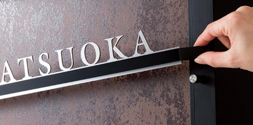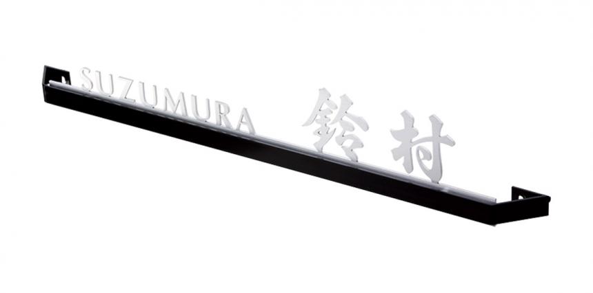 素材:ステンレスHL レーザーカット切文字 2T(mm)、ステンレス 装飾バー 黒塗装 2T(mm)