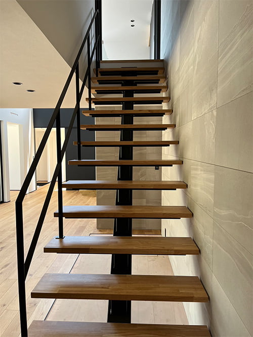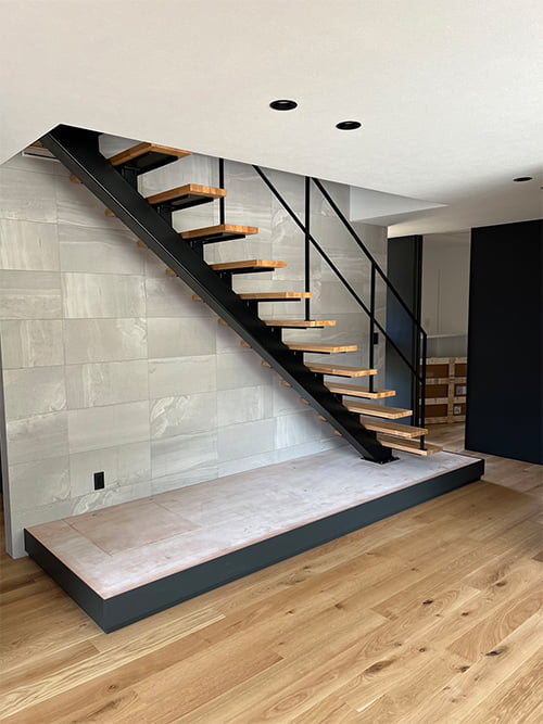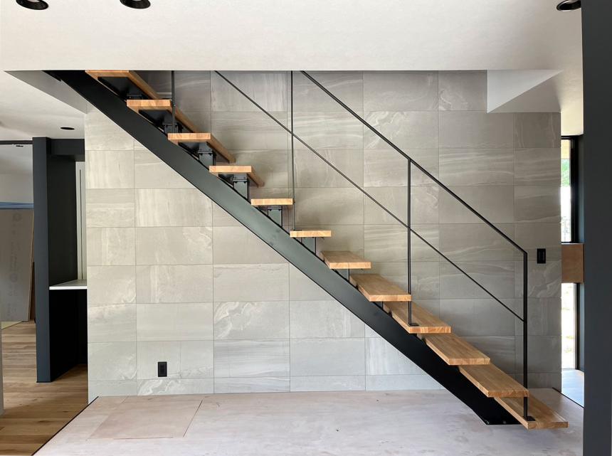 シンプルでモダンなデザインと浮遊感をお楽しみいただけるオープン階段