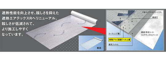 従来の透湿・防水シートに遮熱機能を付加した進化系シートです。