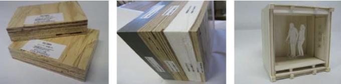 ■耐火構造部: (外部)厚25mm国産スギ積層材を不燃処理し、2枚を重ねて50mmの1時間耐火被覆層として使用