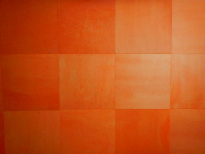 一点一点、手染めによるベンガラ染めの和紙を不燃化しています。 和紙:本石州紙 西田和紙工房