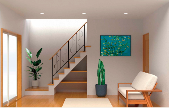 縦桟仕様は子柱の配置をお好みで組み合わせて、お施主様オリジナルのデザインを実現できる新発想の製品です。納期や搬入にストレスが無く、ほとんどの階段(直線部)に対応が可能で業者様にも扱いやすい製品となっています。