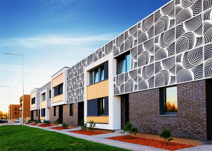 レザーカットしたパネルをあらゆるシーンに組み込むことで洗練された表情の建物へと創造できます。