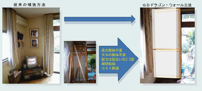 大切な家族を守る、生活に負担の少ない耐震改修工法です。