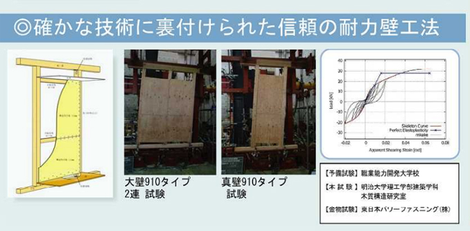 確かな技術に裏付けられた信頼の耐力壁工法で、納まりに応じた各種タイプをラインナップしています。また、耐力に応じた各種耐力壁タイプをご用意しております。