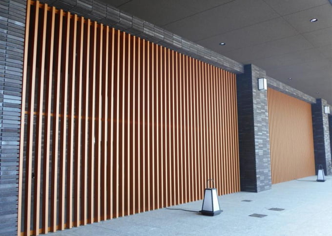 下地材には錆びにくく高強度なアルミ材を採用し、見付幅の広い形状によって重厚感のあるデザインを実現します。さらに、木目調シートの貼り付けにも対応しており、不燃シートでの仕上げも可能です。