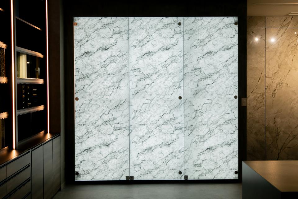 光の演出で美しく輝くデザインガラスを実際に見て、触り、体感いただけることはもちろん、駐在するアドバイザーがお客様のイメージに合った製品をご提案いたします。