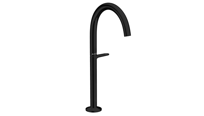 ワンプッシュで吐水をコントロールするセレクトテクノロジーを搭載した洗面混合水栓は、クロムとマットブラックを展開。また、オプショナルサービスのアクサーフィニッシュプラスで10色のカラー加工が可能です。