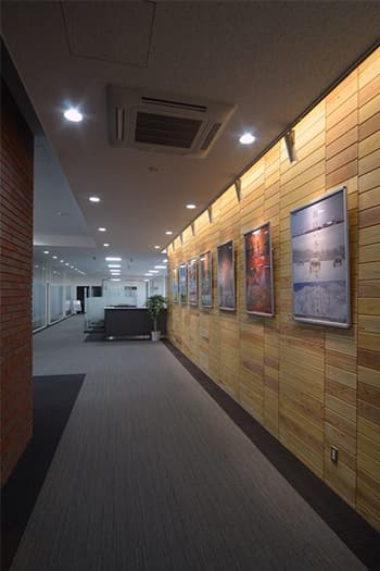 この優れた「道南杉」を多くの人々が集う場所に利用できるよう研究を重ね、独特の風合いはそのままに、火に強く、安心して過ごせる空間のための防火木材として実現しました。