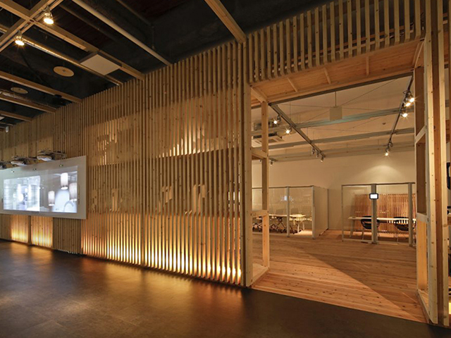 「地元の材料を地元で使う」そんな地材地消(地産地消)の思いから誕生した当社オリジナル内外装パネル「道南杉ハル壁」を是非ご活用ください。