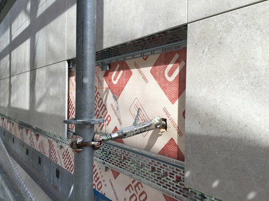 通常の外断熱では外装材の選択が難しいですが、弊社のHT外断熱工法は、通気層乾式工法を採用した上で高性能なブラケットを使用し、外装材の荷重を支え、高性能な剥落防止金具を使用したタイル・石張り工法にする事によりお好きな外装材を多種多様に選択可能であり、剥落も防止できます。