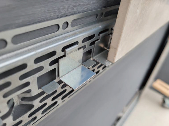 ■タイル裏面に溝切り加工を施し、ビームピンを溝に引っ掛けて接着剤でタイルに固定